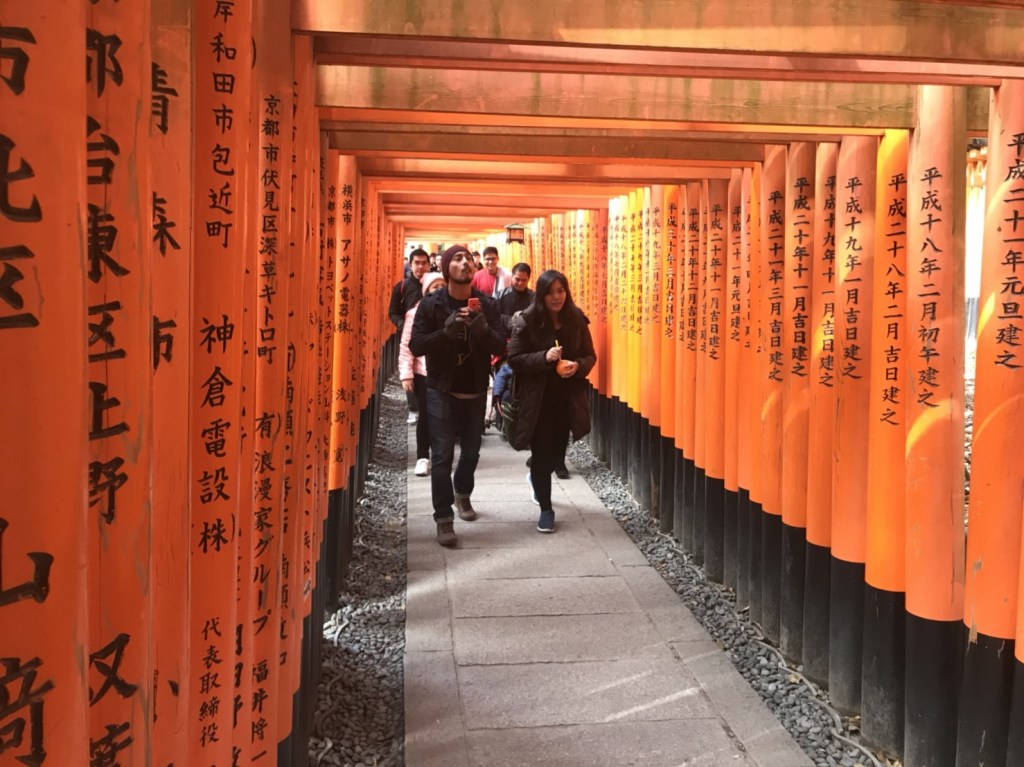 There is an insane amount of temples(tera 寺) and shrines(jinja 神社) in Japan. You can identify which is what by looking for a simple clue: A Buddha statue for Buddhist temples and a torii gate ⛩️ for shinto shrines. Sometimes it is not so obvious, due to religious syncretism. In Kiyomizudera, you pass next to the huge Buddha statue, only to suddenly find yourself caressing some rocks decorated with ropes that will bond you forever with your soulmate. If you pay some extra bucks(~500yen) and write your wish on a wooden block (special shrines come with special designs), you can improve your chances for your wish to be fulfilled. If you are concerned about your luck, there are various ways to better it; you can squeeze your body through a tiny hole on a pillar (I did it, thus I’m lucky for the time being) or walk the holy route under a thousand torii gates (I did it only halfway, but I am already fortunate, so I guess it’s enough).