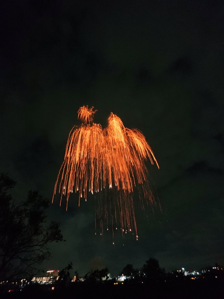 The Tamagawa Hanabi near Futako-Tamagawa Station is truly a top-tier fireworks event. Though last year’s show was canceled in August due to heavy rain, it made a spectacular comeback this October—right in the middle of typhoon season—almost as if to prove its resilience and enduring allure. I suspect many of last year’s unused preparations were repurposed, resulting in an even more impressive display this year. In fact, the show felt like it was doubled in grandeur. Staying true to the meaning of “Futako” (二子), which translates to “two children” or “twins,” the event’s theme featured “twin fireworks” launched from two separate locations along the river.
