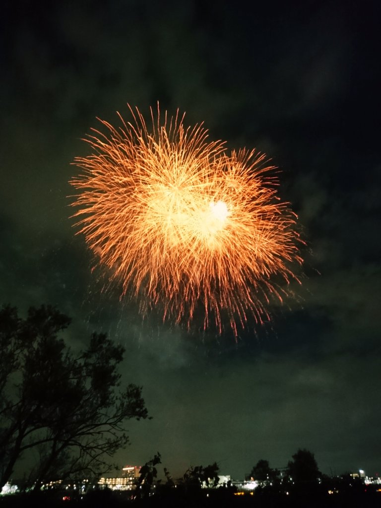 The area around the station underwent significant reorganization to manage the large influx of visitors. A coffee shop was temporarily converted into additional ticket gates to handle the crowds, underscoring the scale of the event. Sponsorship played a big role in its success, with support from numerous organizations, most prominently the e-commerce giant Rakuten, whose headquarters are located nearby. The show lasted a full hour, far exceeding the typical 30-minute duration of similar events, and featured a stunning 6,000 fireworks, as noted on the official website. Among the many dazzling compositions, there were delightful shapes like hearts, cats, and smiley faces that added a whimsical touch. Unfortunately, the riverbank itself was off-limits, so I couldn’t enjoy the enchanting reflection of the fireworks on the water. However, I did manage to capture some memorable shots from the east riverbank of the Tama River, near Kaminoge Station. I hope you’ll enjoy the photos!