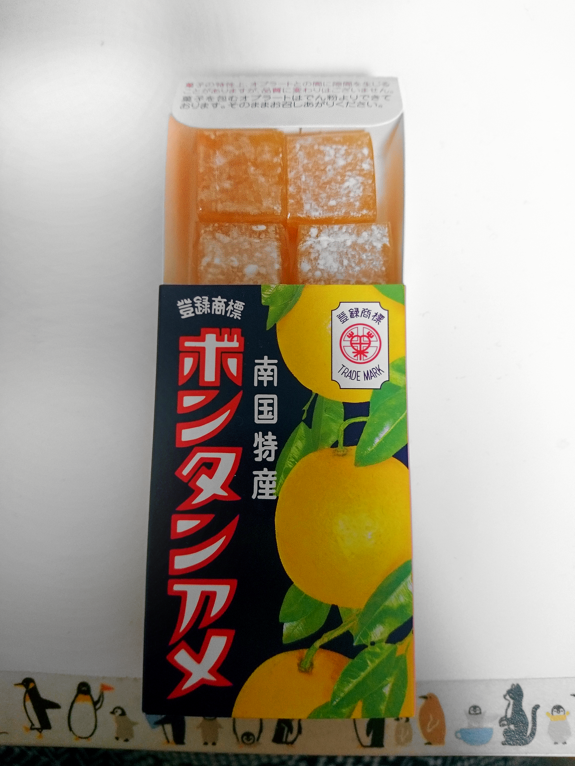 Lately, I came across a strange citrus flavoured candy with an interesting twist, as expected from japanese sweets. Bontan candy is a mochi-chewy style square candy with pomelo and mandarin flavour. The candy comes in a small paper box and each candy piece is covered with transparent wrap. However hard you try to unwrap the candy, you are unable to. And that is perfectly fine~! You are supposed to eat the candy as it is, due to the wrap being edible, made from starch. The initial reaction after tasting/licking the wrap is interesting, it tastes like plastic material that you are not supposed to eat like that, but after a few seconds the wrap starts dissolving with saliva and the candy taste manifests. If you come across bontan candy, I certainly recommend trying it!