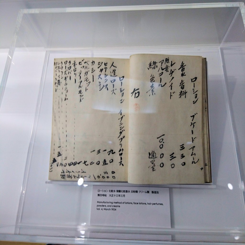 Some of the exhibits were remarkably old. A flat powder designed in order to fit inside the Obi belt of a kimono and assist Japanese ladies in 1920s. Almond milk and cleaning powder conflate the standards of western cosmetics in the 1930s with the traditionally used beauty ingredients in Japan.