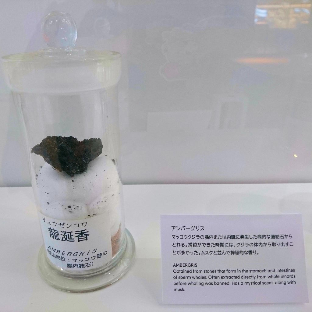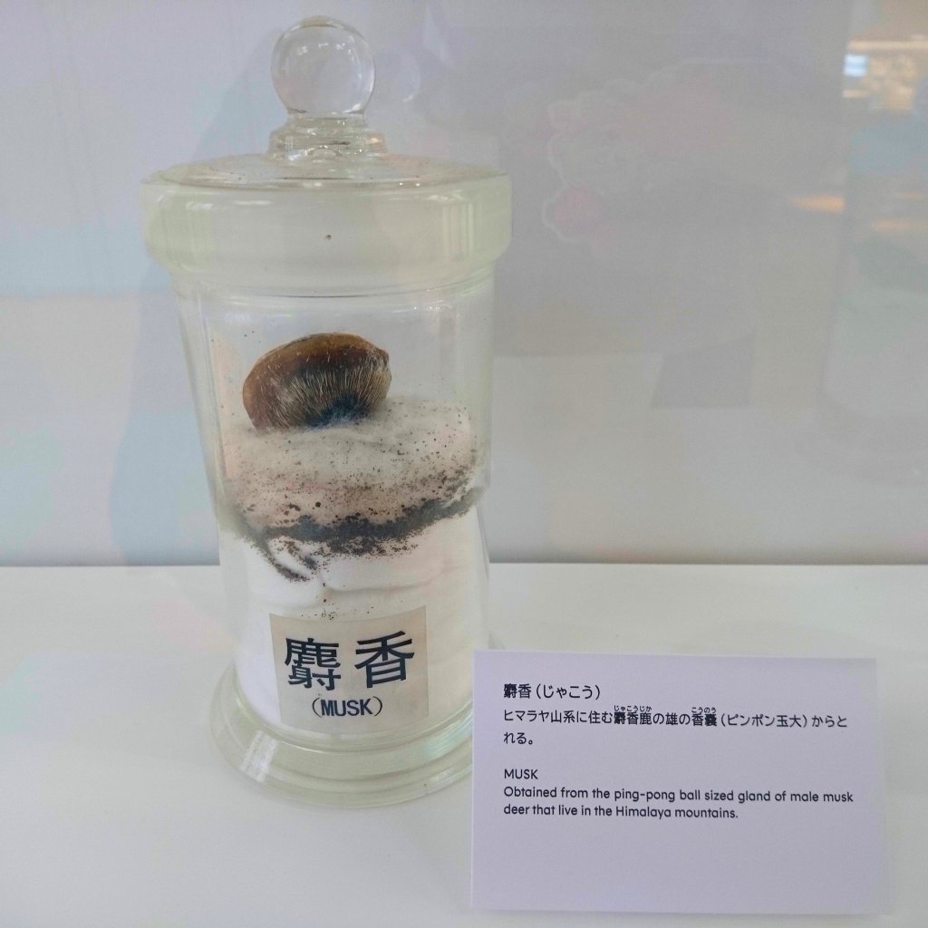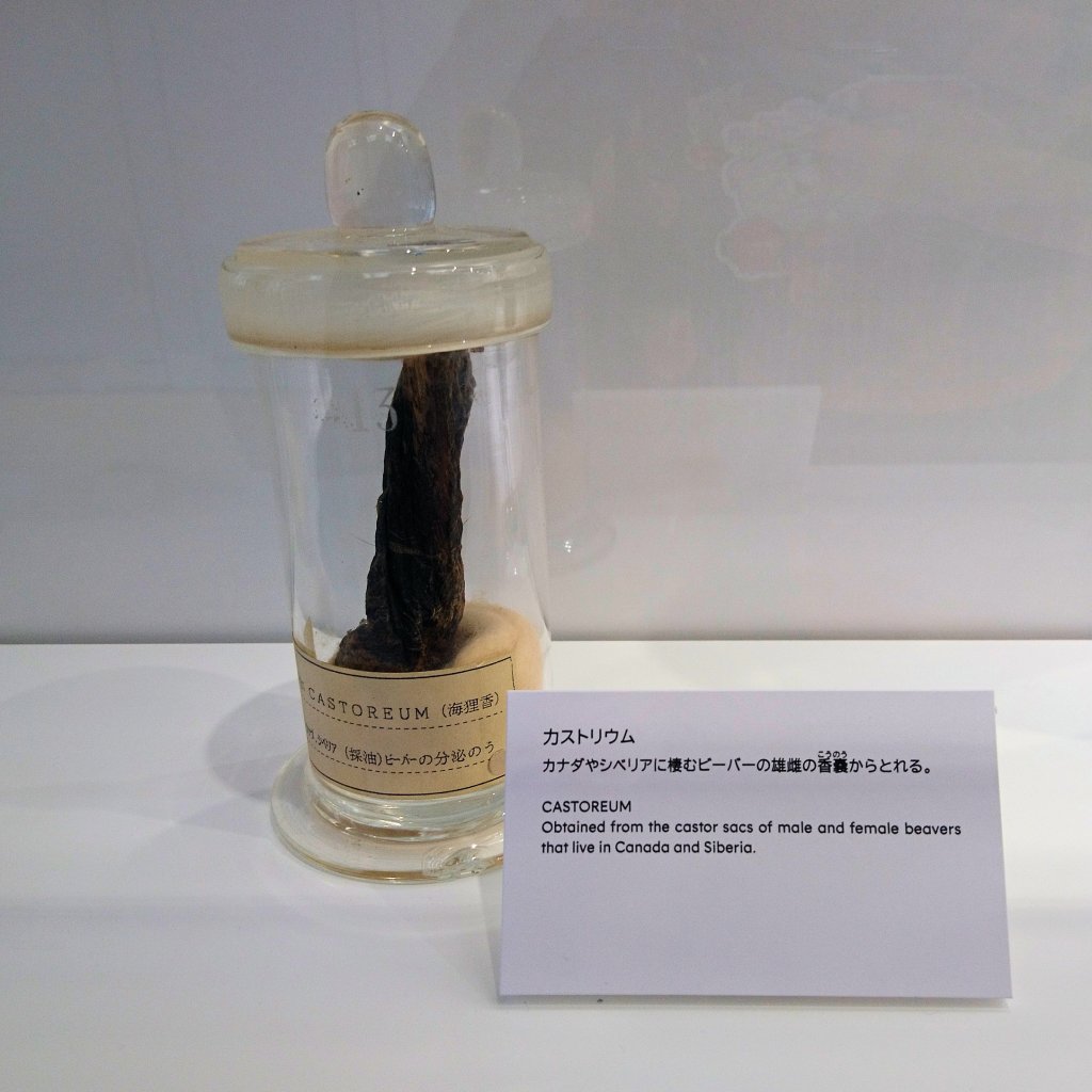A section was called “The origin of aroma” and showcased many samples of famous fragrances and the objects from which they were extracted. For some reason, I expected all of them to originate from trees or flowers. Alas, apart from greasy moss, there were also animal parts, usually glands. Some popular extracts have weird origins, for example musk (from Himalayan deers), civet musk (from civet genitalia) and castoreum (from Canadian castors). Some others, such as ambergris obtained from the intestines of sperm whales, are even illegal today, as it ought to be long ago. If you are concerned about substances originating from animals, check the ingredient label of your favourite perfume more carefully next time.