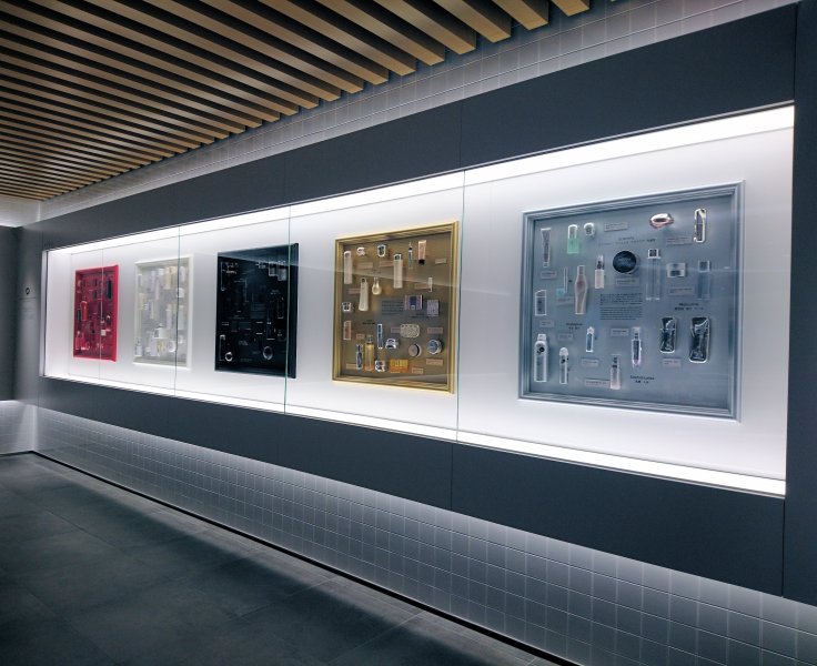 Upon entering the 2nd floor, you notice a circular structure, dedicated to perfumes. There you can smell different aromas and observe Shiseido’s veteran perfume “Eudermine” created in the far far away year 1897. Apart from the fragrance itself, emphasis is given on bottles and the overall design of a perfume; e.g. the importance of selecting just the right material for the bottle cap in order for the product to be marketed successfully.