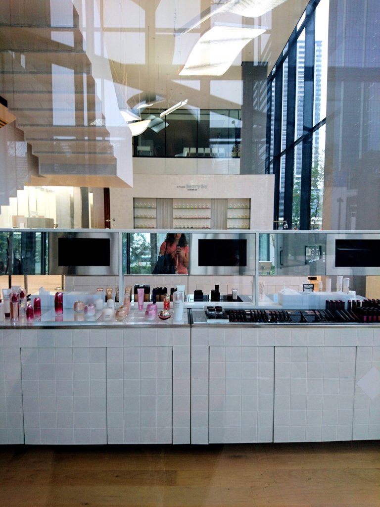 As all proper museums do, the S/Park museum has a small, cute shop. I got myself an imabari face towel (imabari is number 1 in terms of towel quality in japan) and a mini vase for my desk shaped as a testing tube. The building also offers a Beauty bar, where the staff designs personalised cosmetics depending on your requirements (for a fee around JPY12000). Otherwise, you can simply try out Shiseido products for free. Finally, you can sweat it off with one of exercise programs in the “Studio” or enjoy a beverage and healthy snack at the cafe.