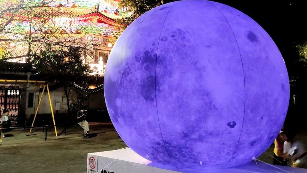 The mid-autumn festival is one of the biggest festivals in the Chinese calendar together with the new year, so it is fitting to visit the Yokohama Chinatown on that day. This year, the celebrations were scaled down due to obvious reasons, so the main attractions were a website of wishes to the moon and a decorative moon. I didn’t expect that the decorative moon would be an actual large moon balloon, illuminated blue-purple, located next to the Taoist Masobyo temple in the middle of the Chinatown.