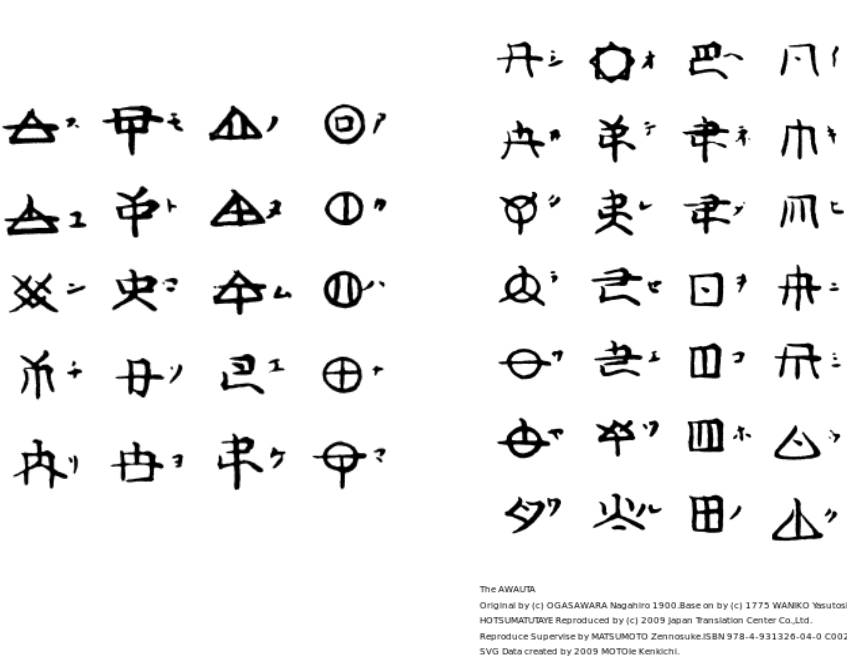 That is what the conspiracy theory claims. But what is the historical truth? Woshite is one of the scripts that are referred to as Jindai Moji (神代文字, scripts from the age of the gods), a group of “native” japanese scripts that are generally considered hoax or false. Woshite letters are assumed to be a creation of some 300 years ago, not thousands as claimed. Similar theories about woshite script and Seoritsu-hime tend to re-appear during a heightened nationalistic climate and seem to be an attempt to get back to the roots and a proof of the “purity of the Japanese culture”, which is stripped from the malicious additions of mainland Asia.