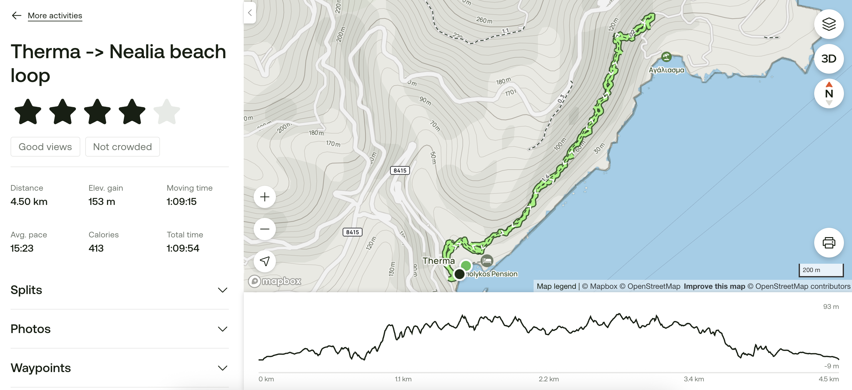On the hiking front, I kept vowing to do a hike at Chalari gorge (I still do). I even brought my hiking gear, which I never used. The gorge of Chalari leads to the unruly beach of Na, home to the most dangerous waves of the Aegean sea. If the waves of Na take your breath away, Mitsaras’ god-tier kolokythopita at Agios Polykarpos can revive you. Fast-forward to next year, when we stayed only in Raches and absolutely refused to move an inch away from Mesakti beach bar. Rinse-repeat loop till next summer.