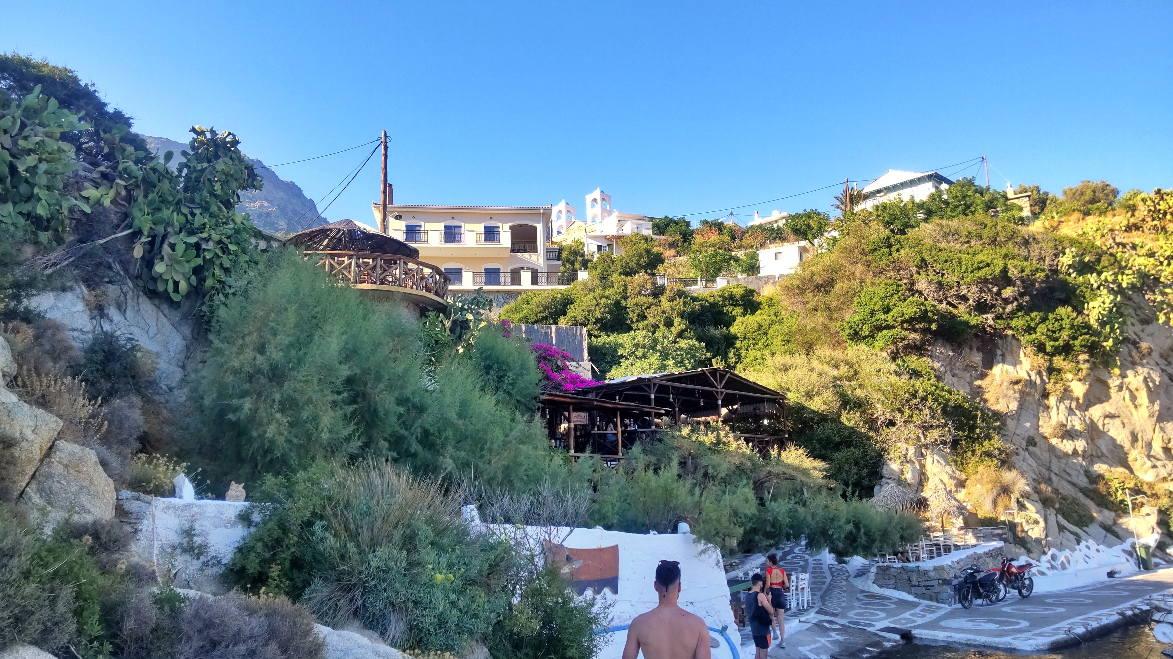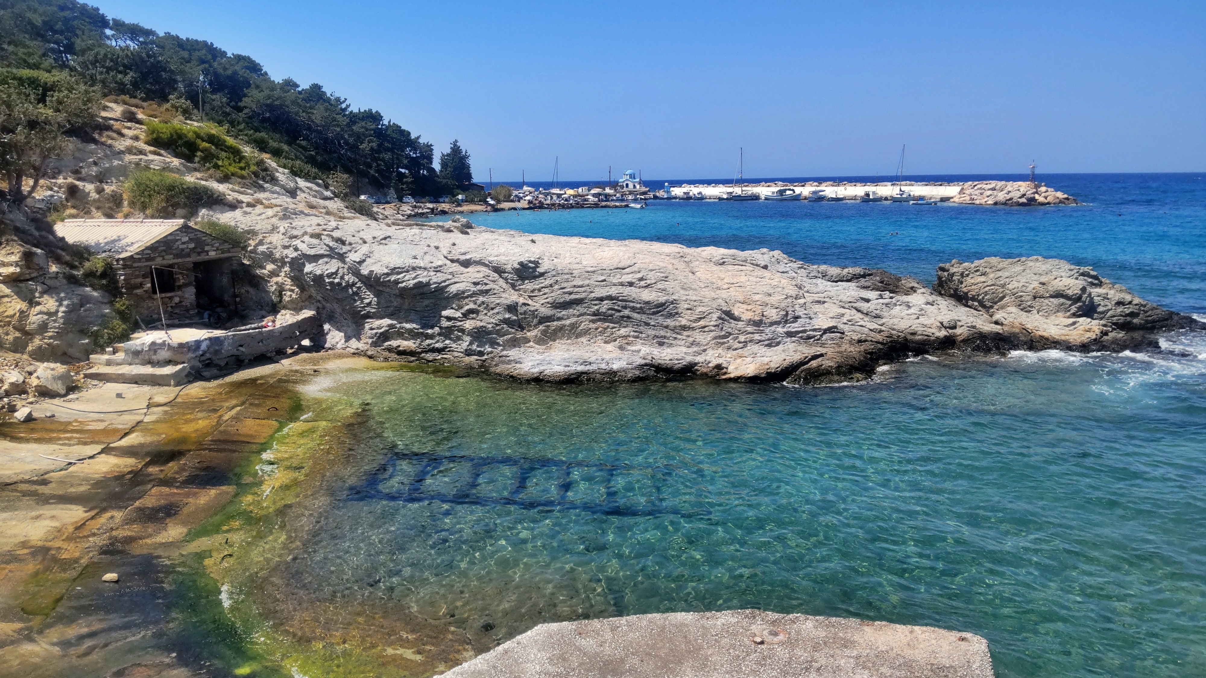 Even if your greek is rusty, you probably can guess that Therma means “hot”. The small village has a wonderful natural hot spring, located conveniently directly on the beachfront. Our daily routine involved touring the tiny bays with rocky beaches of the east. Every evening, religiously without fail, we quickly stopped by at the hot spring for a quick soak, just before returning to our room to get dressed for our night-out. Straight-up primal onsen vibes in a modern Greece setting, with a culture that has forgotten by now what hyped Roman baths and Turkish hammam.