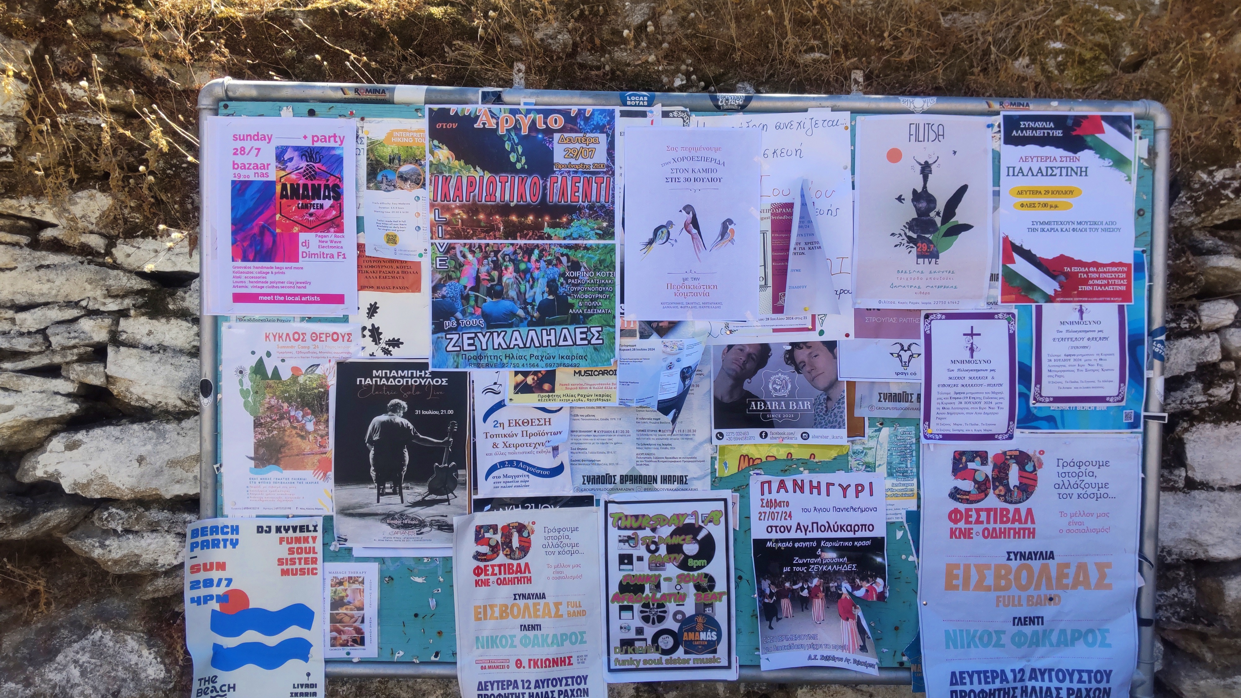 Our routine in the west side of the island is similar but even simpler. Wake up at 2pm, get breakfast under the trees at the yard of our room, swim/drink/repeat, visit a Panigiri or enjoy live music in the evening. There’s no social media post to notify of what’s going on around the island. You just have do a treasure hunt for the actual posters (the biggest collection is at Mesakti and at Mia Zoi Pita) that are renewed almost every day, because everyday is a holiday. Asking “hey guys, are you doing anything interesting tonight?” is the usual ice breaker when trying to get to know the group of people chilling next to you. Vrakades, Karkinagri, Kampos, Petropouli, you just have to keep on dancing Ikariotikos or island walz non-stop. My only recommendation is to follow the duo Skoutas-Mitarakis when they are playing together with Ikariotiki Kompania. The last stop of the night is either a final beer at Sknipa bar or a hangover bite at Asterix bakery at down. By that point, everything is a blur.