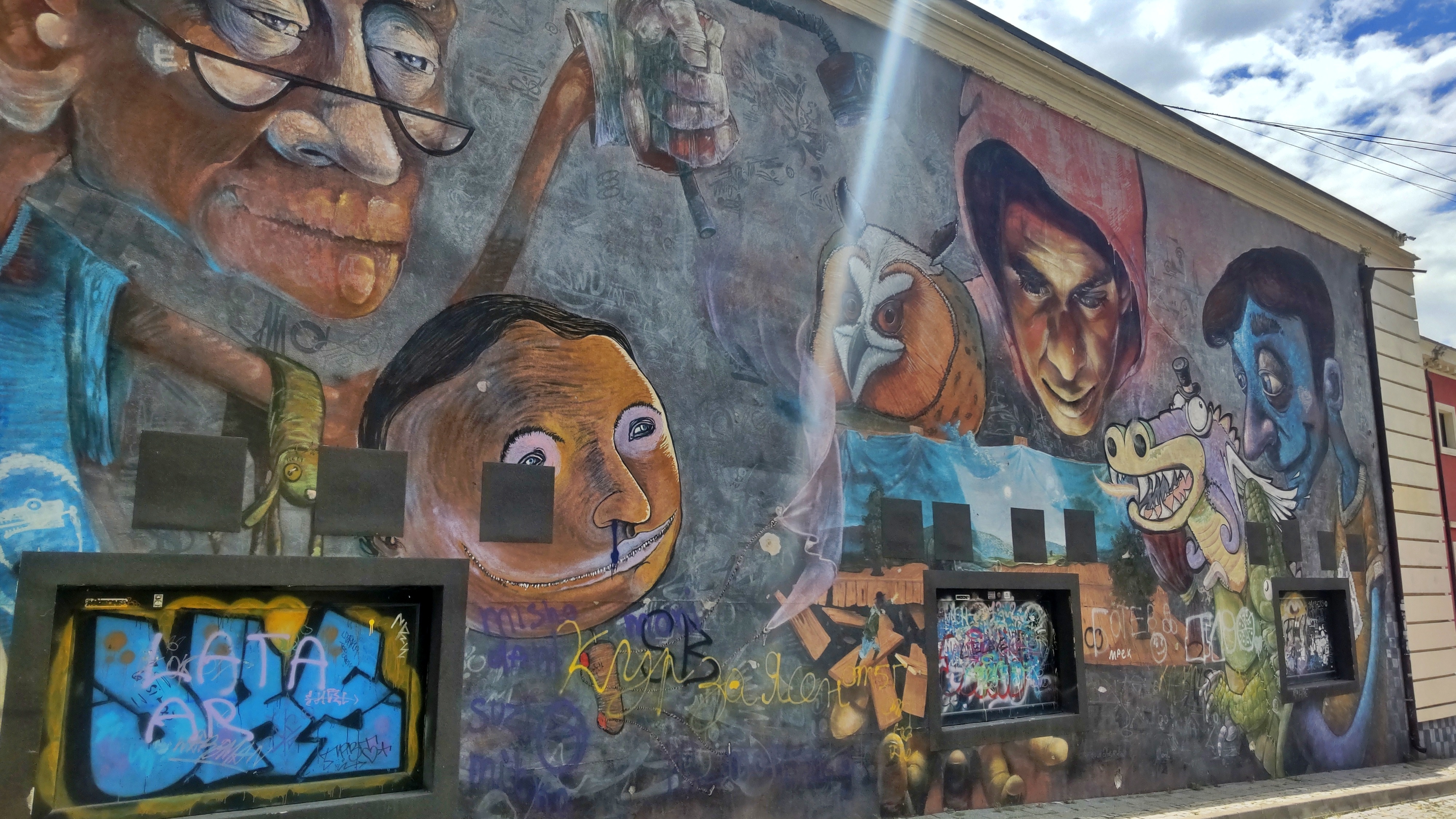 Η στιβαρή αρχιτεκτονική, επίσης, φαίνεται κάθε άλλο παρά μουντή, αλλά ίσως φταίει το λαμπερό φως του Ιούνη. Ο δρόμος μπροστά από τη Βουλή είναι στρωμένος με κίτρινα τούβλα. Ήταν δώρο γάμου από την Αυστροουγγαρία στον Βούλγαρο Τσάρο Φερδινάνδο στις αρχές του 20ου αιώνα. Για τους κατοίκους της Σόφιας, η φράση «γεννημένος στα κίτρινα τούβλα» σημαίνει ότι είσαι «βέρος» αριστοκράτης της πόλης. Ταυτόχρονα, είτε νεοκλασικά είτε bauhaus, τα κτίρια συχνά κρύβουν αρκετή τέχνη μέσα και έξω τους. Τα τεράστια τσιμεντένια κτίρια έχουν γίνει ο ιδανικός καμβάς για γκραφίτι, βλ. το Urban Creatures. Με πήγαν σε μια γκαλερί μοντέρνας τέχνης τύπου speakeasy (ίσως μάντεψες το θέμα της έκθεσης: αστακός) το Swimming Pool project, αλλά τα γκραφίτι, οι πίνακες και τα art installations είναι διάχυτα στην πόλη.