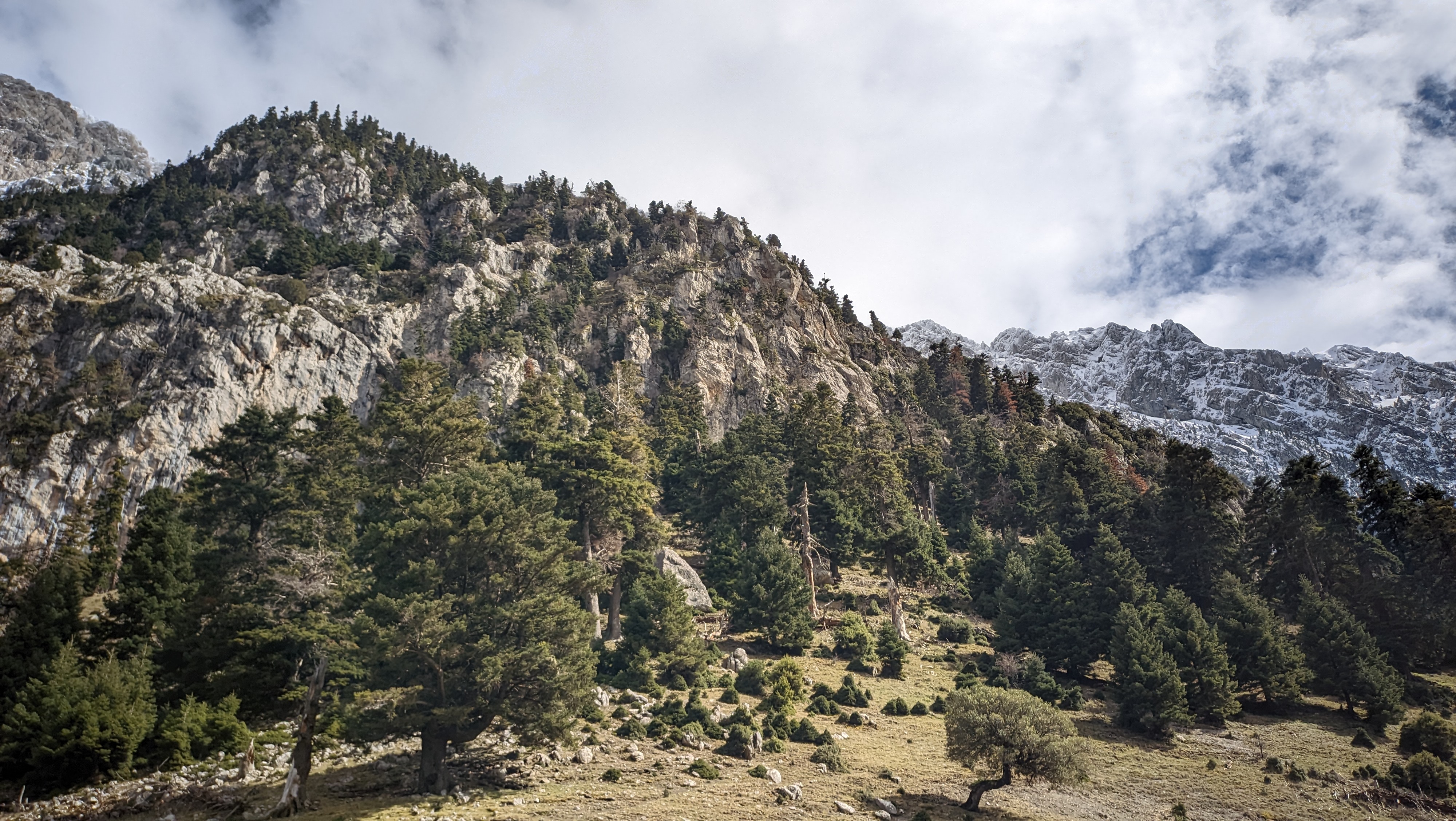 It was warm spring morning when we started our long, long hike from Viniani along the gorge of Rekka. Tall, rough rocks hover above my head. They are intimidating to say the least. The pebble-covered bed of the gorge is not my cup of tea, but it’s a nice option to cover some mileage and reach the mountain hut comfortably. After two hours, we entered the forest and at 1700meters altitude we were greeted by the first snow patches. As you climb the neck of the last slope, the mountain hut is visible, guarded by a huge solitary boulder. It seems like this boulder was intentionally placed there, to provide protection to hut from privy eyes. Oh well, who cares about the fact that someone chose to build the hut directly next to it, I prefer my own version of the lore.