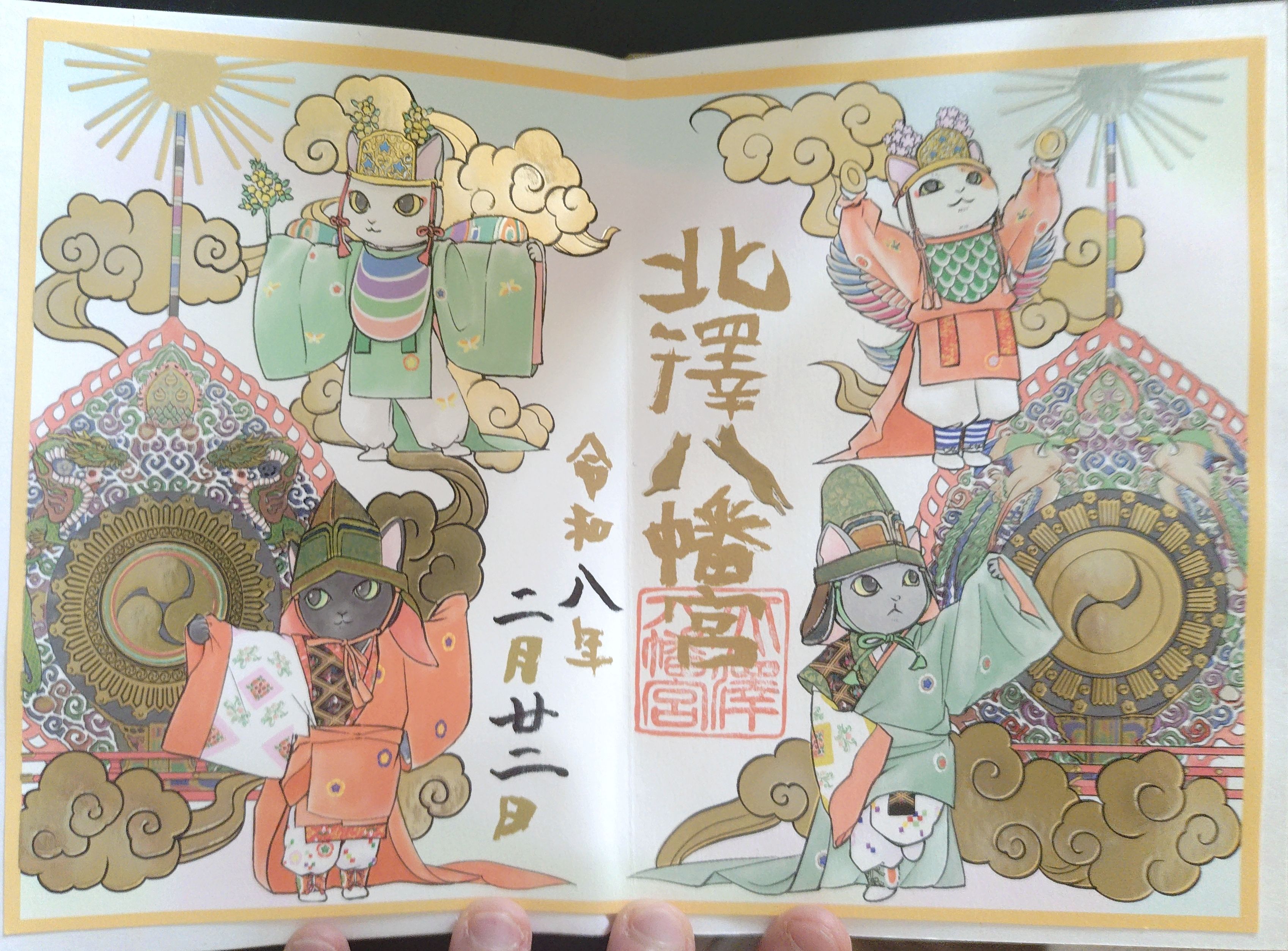 From Nikko Futarasan Shrine (日光二荒山神社) in Nikko, Tochigi. It depicts a lucky mouse holding a kaburaya, a signal arrow, because according to a legend a mouse helped save people from a fireCompleted shuincho #2 – the one from Zozoji temple in Tokyo