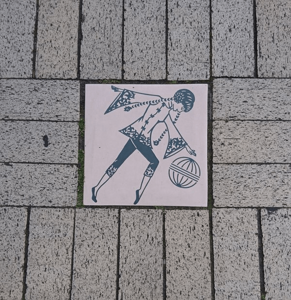 Πλακάκι στη γειτονιά Yamate της Γιοκοχάμα, δείχνει ένα ζευγάρι Άγγλων(?) να συνομιλεί με μια γκέισα μπροστά από κτήρια δυτικού τύπου. Αυτή η γειτονιά του λιμανιού είχε τις πρεσβείες και τις δυτικού τύπου κατοικίες διπλωματών και ξένων κατοίκων, αλλά και το νεκροταφείο ξένων.