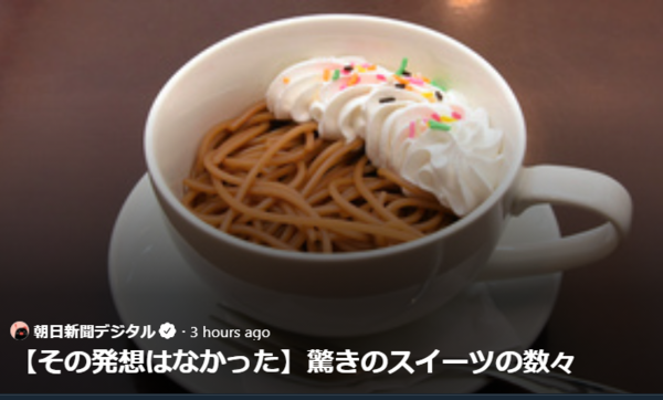- ΓΙΑΤΙ ΣΑΣ ΑΡΕΣΕΙ ΝΑ ΒΑΖΕΤΕ ΜΑΖΙ ΠΡΑΓΜΑΤΑ ΠΟΥ ΠΡΟΦΑΝΕΣΤΑΤΑ ΔΕΝ ΤΑΙΡΙΑΖΟΥΝ ΟΥΤΕ ΚΑΝ ΟΠΤΙΚΑ. “Σπαγκέτι βιενουά”, μακαρόνια βρασμένα σε καφέ με σαντιγί λέει, 820γιεν, σπεσιαλιτέ ενός μαγαζιού στη Ναγκόγια.