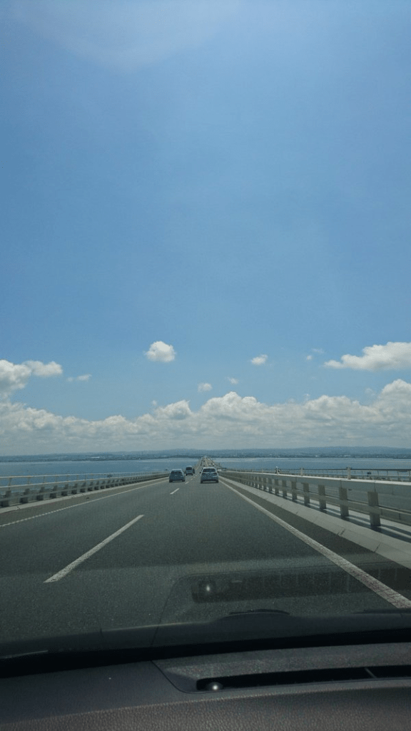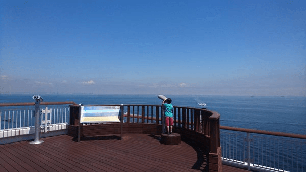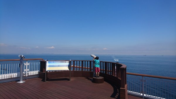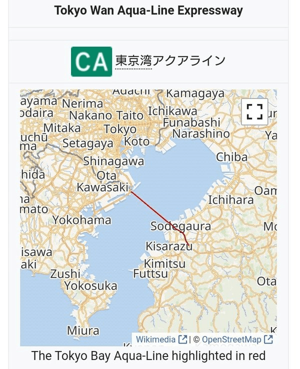 Αυτή είναι η γέφυρα Tokyo Bay Aqua Line που ενώνει το Καβασάκι της Γιοκοχάμα με το Κισαράζου της Τσίμπα, περνώντας επάνω (4.4km γέφυρα) και κάτω (9.6km τούνελ) από τον κόλπο του Τόκυο. Στη μεση επάνω από το τούνελ ξεπροβάλει ο άσπρος “πύργος του ανέμου”, οι αεραγωγοί του.